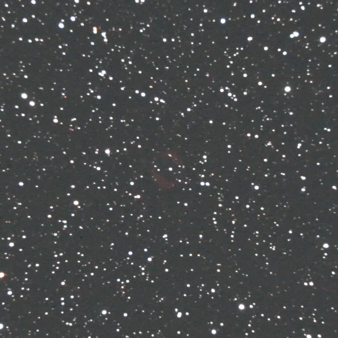 With an apparent diameter of 2 arcminutes, it emits red Hα light and shows a slightly distorted, ring-like structure.