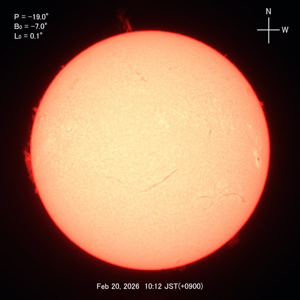 This section shows you the solar images taken with the CORONADO 40mm Hα solar telescope since Apr 2007. We can observe continuously various interesting phenomena in solar chromosphere like Plages (active regions), Flares, Dark filaments, and Prominences at the rim, and so on. Those images are rather observed data than works for appreciation, I've excluded detailed description in individual images. | ||||||||
